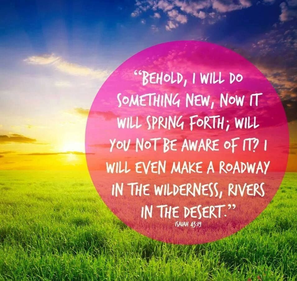 In Isaiah 43:19 God says: "Behold, I will do something new, now it will spring forth; will you not be aware of it? I will even make a roadway in the wilderness, rivers in the desert."